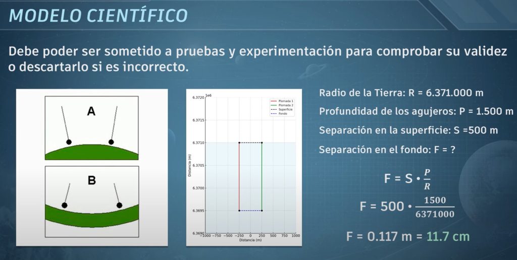 Por lo tanto, el experimento podría realizarse de una manera más sutil, por ejemplo con unas cuerdas de acero colgando con barriles de aceite muy pesados en sus extremos (plomadas), y registrando la distancia entre la parte superior de las plomadas (sujetas al puente), y la parte inferior de las mismas (a 1 metro del suelo), con unas postas clavadas en la tierra cada 10 metros, que señalarían la distancia entre los extremos inferiores de las plomadas. Este método sería visible para cualquier persona que quisiera hacer su propia comprobación y, además, sería irrefutable, determinando de una vez por todas la verdadera forma de la Tierra.