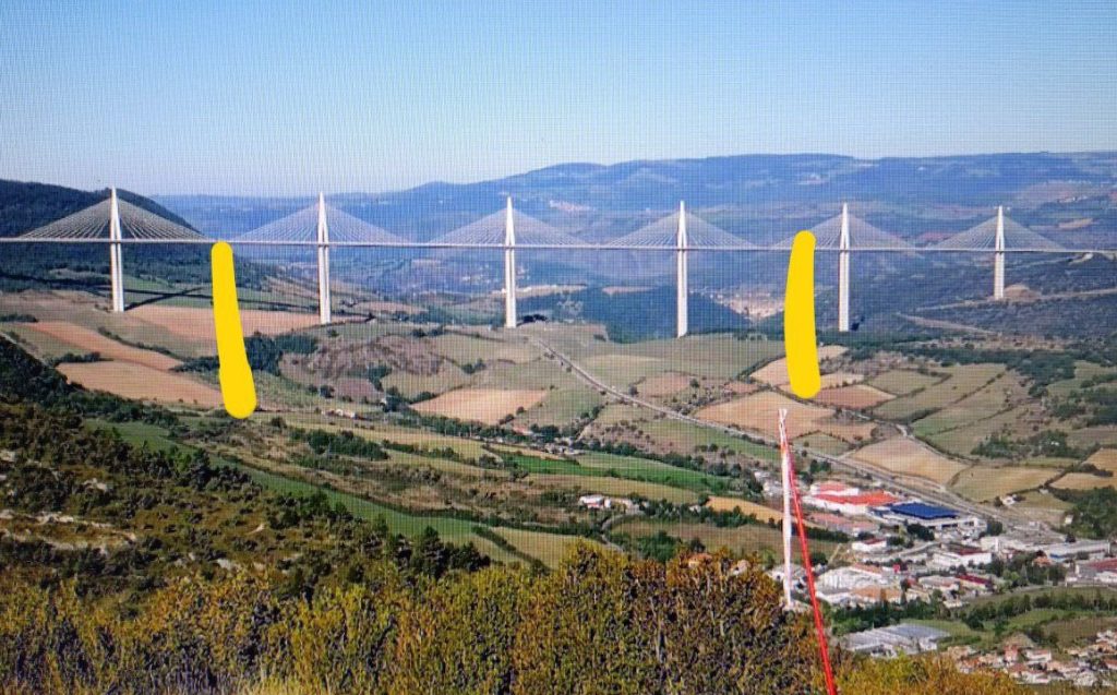Existe un puente donde podría realizarse este experimento: el viaducto de Millau, cuya longitud nivelada se extiende por 2.460 metros, y cuya altitud máxima se encuentra a 343 metros. Así pues, los puntos de inicio de la caída libre deben estar a 500 m de separación, y con una caída de por lo menos 255 m, debería dar como resultado un mínimo de 2 cm de diferencia respecto de los puntos del puente donde fueron soltadas las piedras, ya sea mostrando convergencia (Tierra convexa) o divergencia (Tierra cóncava).